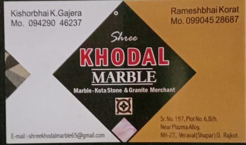 Khodal Marble Rameshbhai Korat 9904528687 sr no.197 plot no,6b/H NH 27 Veraval Sapar Rajkot