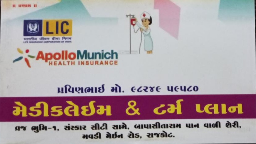 Mediclaim advisor (apollo Munich health insurance) Pravinbhai Korat 9824959580 Vrajbhumi-1 opposite Sanskar city mavdi main road, Rajkot