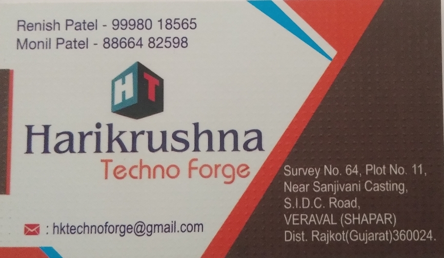 Harikrushna Techno Forge Renish Korat 9998018565 sr no 64 plot no 11 near sanjivni casting SIDC road veraval sapar