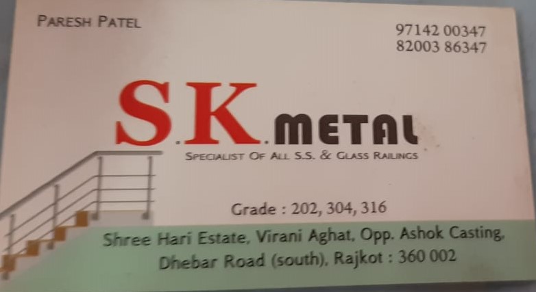 S K METAL Paresh Patel 9714200347 shree hari asket virani agad opp ashok casting Debar road