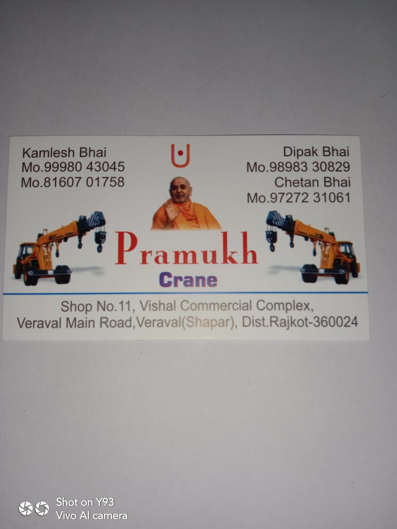 Parmukh crane Kamleshbhai Korat 9998043045 shop no 11 ,vishal complex, veraval main road ,veraval (shapar)