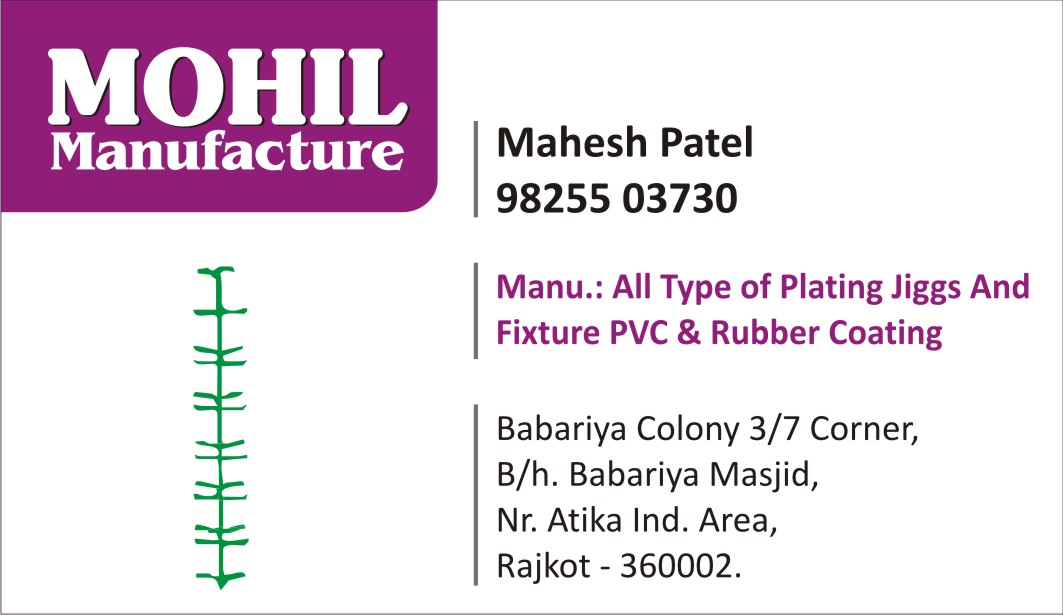 Mohit manufacture Mahesh Patel 9825503730 Babariya colony 3/7 corner ,babariya masjid ,nr.atika ind.area, rajkot-360002