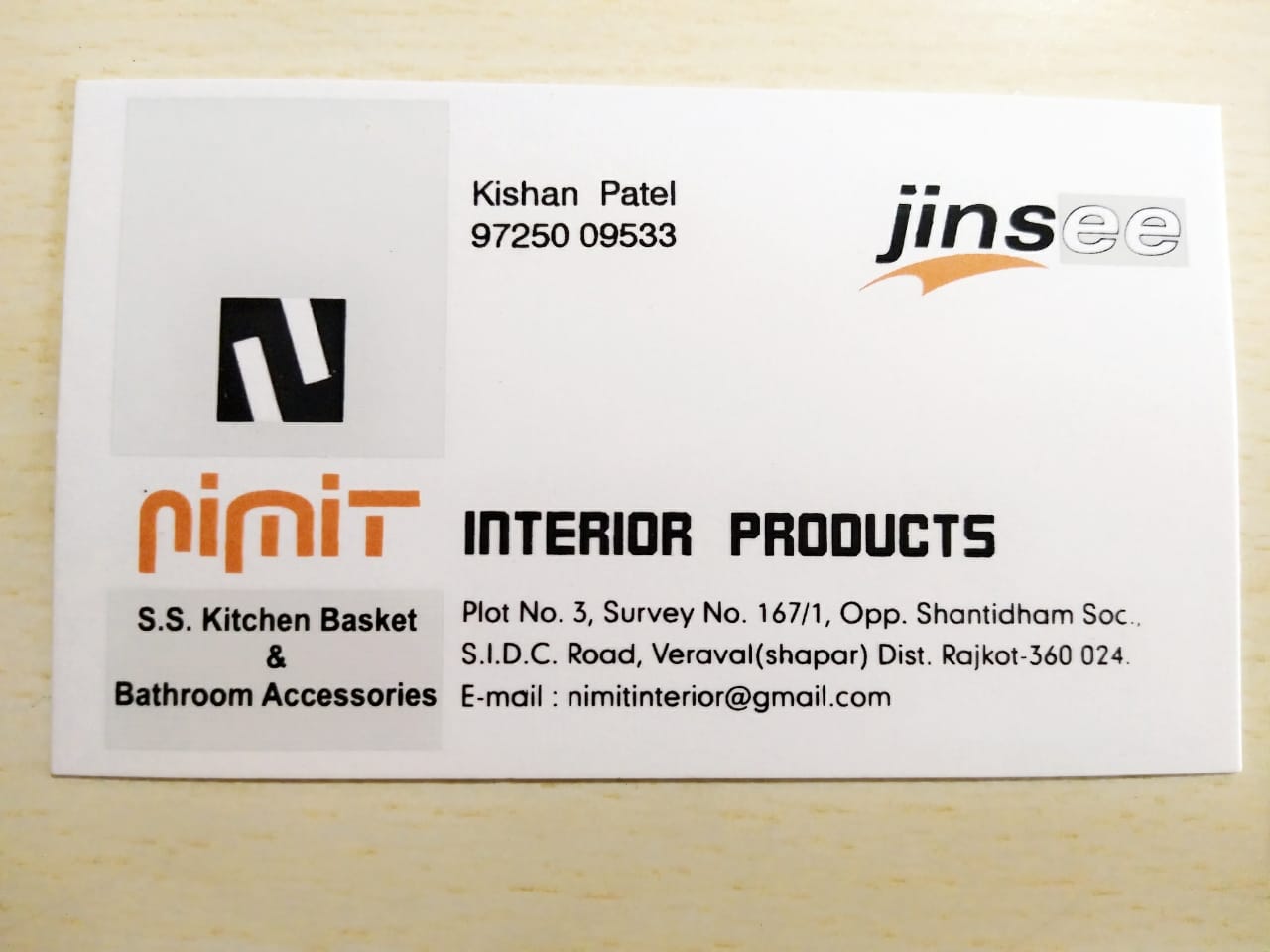 nimit interior products Kishan Korat 9725009533 plot no.3, survey no.161/1 opp. shantidham soc. sidc road veraval(shapar)