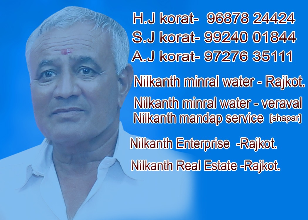 Nilkanth mineral water & mandap service Sabjaybhai Jivanbhai Korat 9687824424,9924001844,9727635111 veraval (shapar) rajkot -360024