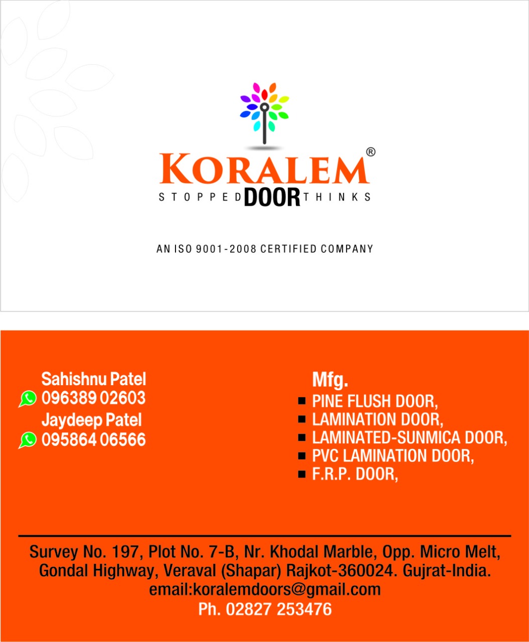 Koralem door Jaydeepbhai Korat 9586406566 Survey no.197,plot no.7-b,khodal marble,opp.micro melt, gondal highway,veraval (shapar) rajkot-360024.gujrat-india. email-koralemdoors@gmail.com Ph.02827 253476