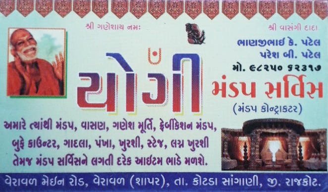 yogi mandap service Pareshbhai Korat 9825062317 Veraval main road, veraval (shapar). ta-kotda sangani,dist-rajkot