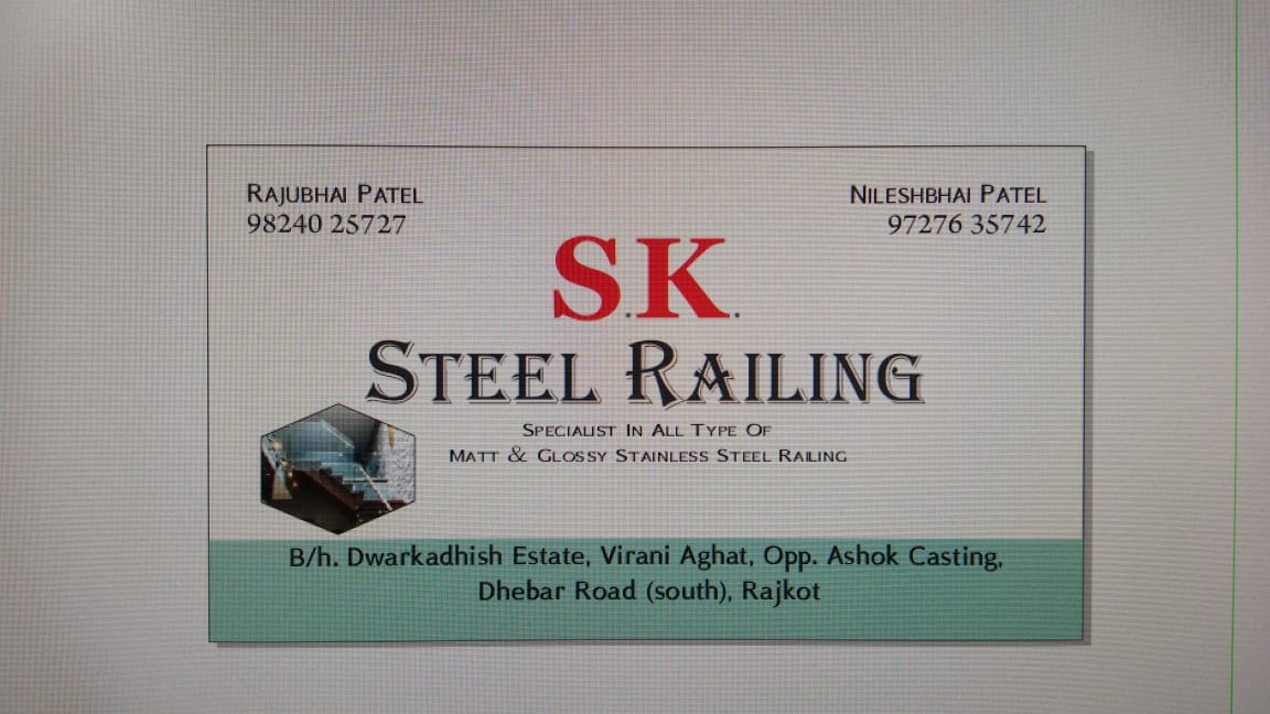 SK steel railing Rajubhai Patel 9824025727 B/H.dwarkadhis estate, virani aghat,opp.ashok casting, dhebar road (south),rajkot