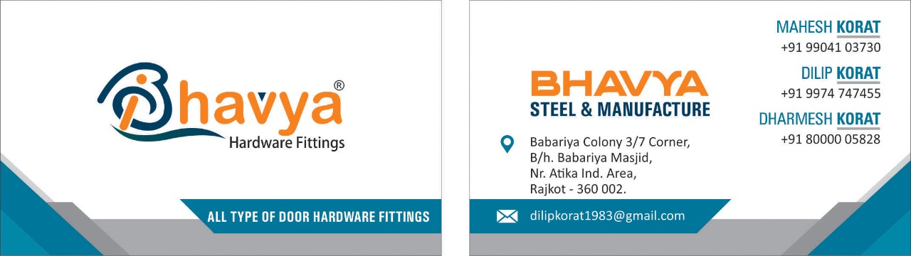 Bhavya steel& manufacture Mahesh Korat 9904103730 babariya colony 3/7 corner, babariya masjid, nr.atika ind.area, rajkor-360002
