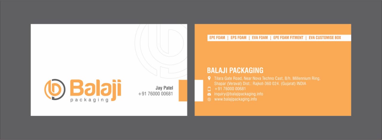 Balaji packaging Jay Patel 7600000681 tilara gate road, near nova cast, shapra (veraval)