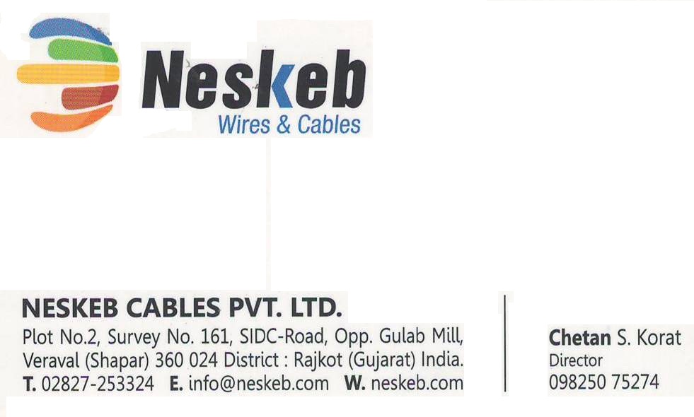 Neskeb wires &cables Chetan S Korat 9825075274 plot no.2, survey no.161, sidc road opp gulab oil mill, veraval (shapar)