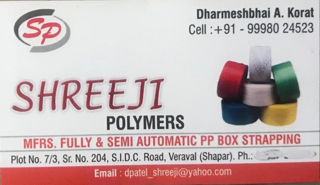 shreeji polymers Dharmeshbhai Korat 9998024523 plot.no.7/3. sr. no. 204,S.I,D.C.road veraval (shapar) email.dpatel_shreeji@yahoo.com