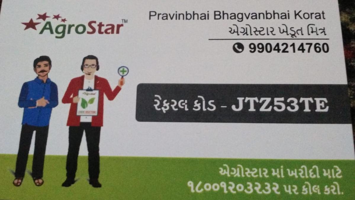 Agrostar Pravinbhai Bhagvanbhai Korat 9904214760 veraval main road,veraval (shapar) refral code-JTZ53TE