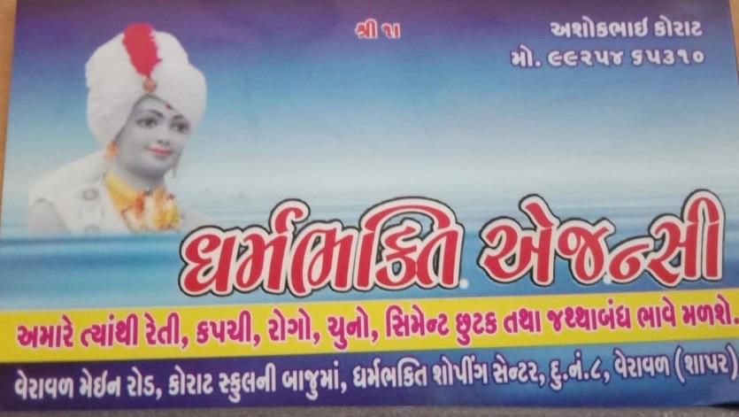 Dharmabhakti agency Ashokbhai B Korat 9925465310 Dharmabhakti shopping centre shop no.8, nr,korat school, Veraval main road, veraval (shapar)
