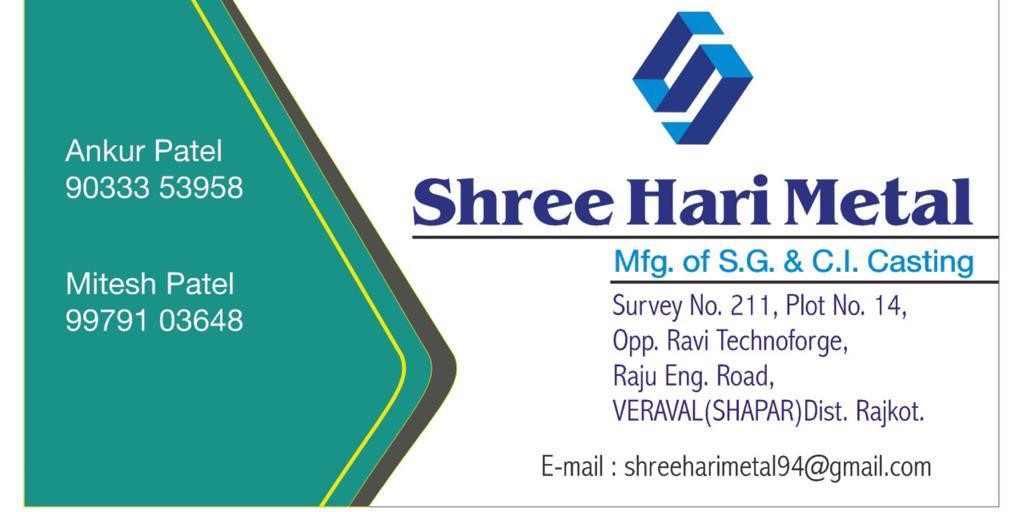 Shree Hari Metal Ankur Korat 9033353958 Sr no 211 plot 14 opp ravi techno forge raju eng. road veraval sapar shreeharimetal94@gmail.com