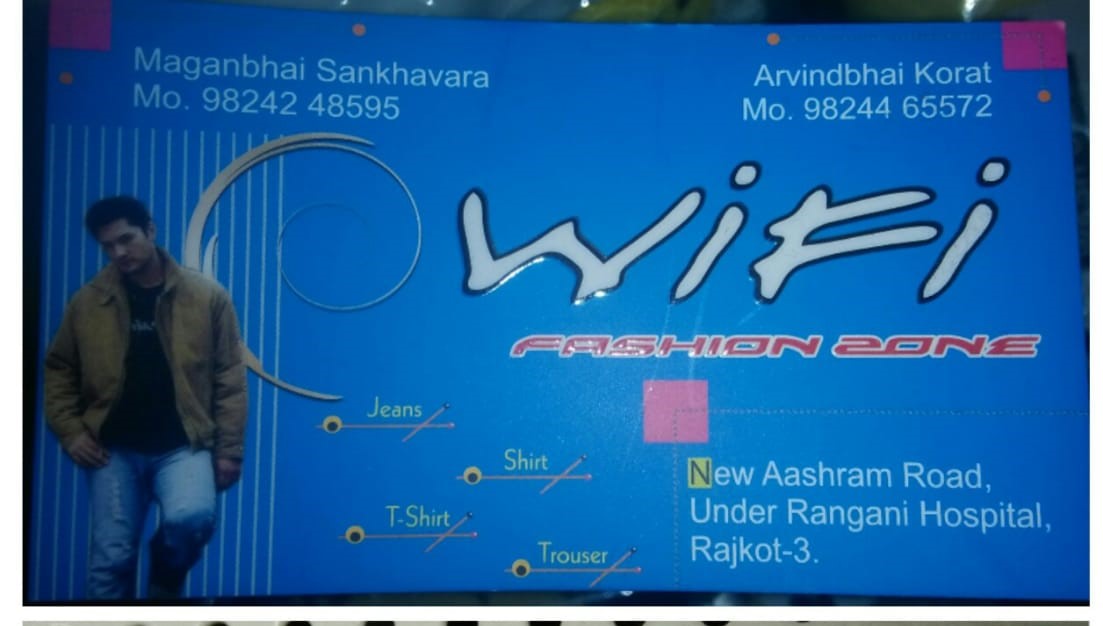 Wifi Fasion Zone Arvind Korat 9824465572 New Ashram Road Rangani hospital rajkot