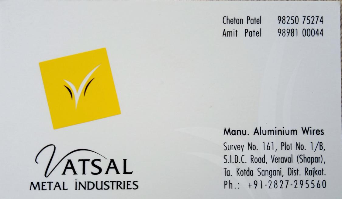 Vatsal metal industries Chetanbhai Korat 9825075274 survey no.161,plot no.1/b. s.i.d.c.road veraval (shapar) ta-kotda sangani,dist-rajkot ph-02827-295560