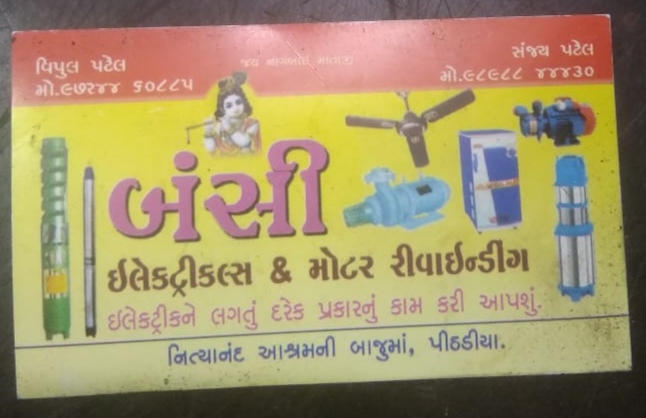 Bansi Electricals Vipulbhai Korat 9724460885 Near Nityanand Ashram - Pithadiya