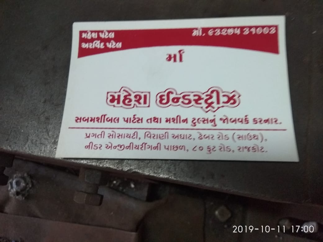 Shree Swaminarayan machine tools Nileshbhai Korat 9624817749 Atika ind.area, Street no.2, Rajkot