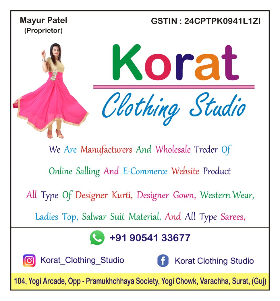 Korat Clothing Studio Mayurbhai Korat 9054133677 Yogi Chowk, Surat